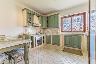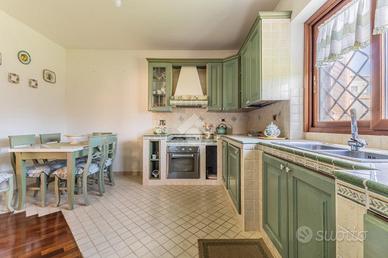 Al piano terra si apre una luminosa zona giorno composta da un grande soggiorno, una cucina abitabile, una camera matrimoniale e un bagno finestrato con vasca. Ogni ambiente è caratterizzato da una piacevole luminosità naturale e da affacci sul verde circostante, che regalano una sensazione di pace e continuità tra interno ed esterno.