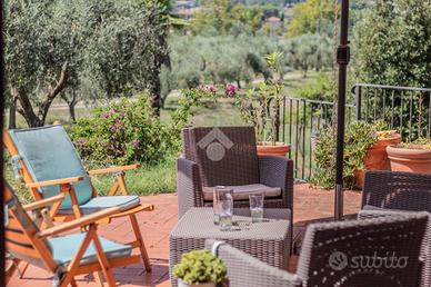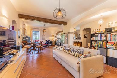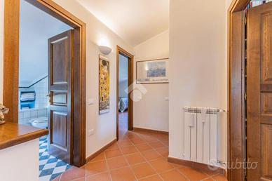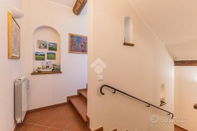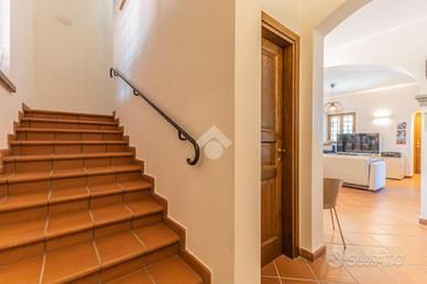 La villa gode di una posizione collinare dominante, che regala panorami spettacolari sul lago in ogni momento della giornata. Gli ambienti interni sono stati rifiniti con materiali di pregio: travi a vista, pavimenti in cotto toscano e porte in noce massello donano calore e raffinatezza a ogni spazio.