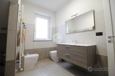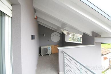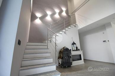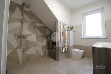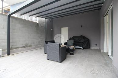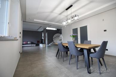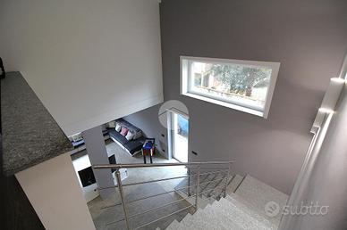 In zona centrale, all'interno di una via di poche abitazioni, villa singola di costruzione del 2021. L'immobile è stato edificato ponendo significativa attenzione ad ogni aspetto tecnico, energetico ed estetico, così da valorizzare al meglio la costruzione ed ottenere ampi e comodi spazi. Il piano terreno si sviluppa per circa 130 mq., a partire dalla comoda e accogliente sala da pranzo. La cucina abitabile sviluppa uno spazio ideale sia per la preparazione delle pietanze, sia per un conviviale pranzo quotidiano; essa è dotata inoltre della pratica dispensa. Le portefinestre illuminano ottimamente la stanza e permettono di raggiungere l'ampio giardino ed il patio completamente pavimentato. Il salotto è stato realizzato per accogliere ospiti e famiglia, sviluppandosi per circa 42 mq, illuminato da una portafinestra e da una ampia finestra che affaccia sul giardino. Il bagno è accessoriato con sanitari moderni e ampia doccia, oltre al pratico termoarredo. Completa il piano una prima camera da letto, sfruttabile come studio. La scala interna, posizionata a vista nel soggiorno, accompagna al primo piano in cui si sviluppa l'intera zona notte. Le due camere da letto doppie sono accessoriate con la propria cabina armadio. La camera da letto matrimoniale è dotata anch'essa di ampia cabina armadio e bagno padronale, dal quale è possibile raggiungere il balcone ed il terrazzo coperto. La lavanderia si sviluppa per circa 16 mq. e la portafinestra affaccia sul gradevole terrazzo coperto, ben sfruttabile durante tutto l'anno. Il bagno del piano è rifinito con piastrelle in gres porcellanato effetto pietra, sanitari moderni e doccia. L'accesso carraio conduce, tramite il vialetto rifinito in mattoni autobloccanti, all'autorimessa che è in grado di accogliere comodamente due camper grazie all'ampia apertura di ingresso. Complessivamente l'immobile è dotato di uno spazio esterno di circa 300 mq. La villa è dotata dei migliori e più recenti impianti; il sistema di risc