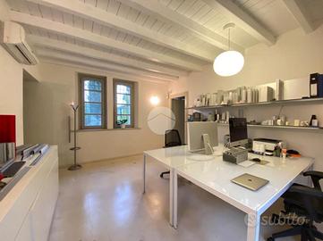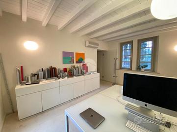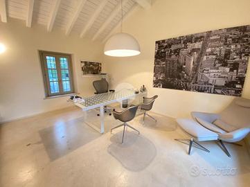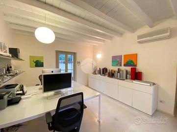 L'unità abitativa è dotata di sei locali posti su due livelli, collegati da una scala centrale, una reception (motivata dal fatto che attualmente l'immobile sia adoperato come studio), tre bagni, corridoi e due locali destinati a ripostigli. La porzione di proprietà esterna è ultilizzata come giardino esclusivo.