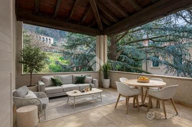 Il piano terra accoglie la zona giorno con un soggiorno luminoso e raffinato, una cucina abitabile e un bagno di servizio. Gli ambienti dialogano con l'esterno attraverso un portico con terrazzo, uno spazio riservato e suggestivo, ideale per momenti di relax o per accogliere ospiti in un contesto intimo e ricercato.