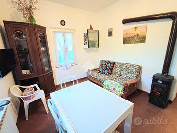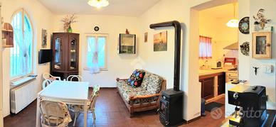 La villa è indipendente, è divisa in due abitazioni autonome e sita in posizione tranquilla e soleggiata. L' accesso è tramite il patio ideale per le fresche sere d'estate circondati dal verde della campagna. La prima soluzione ha ingresso sulla zona giorno a vista con salotto e cucinino. Le due camere da letto matrimoniali sono al primo piano Il bagno è stato rifatto recentemente con doccia e con affaccio sul terrazzo.