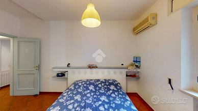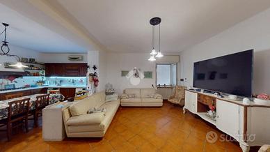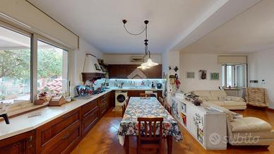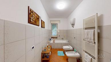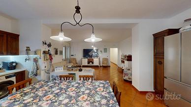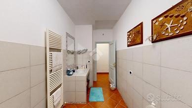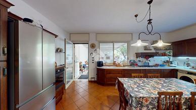 A seguire, dalla sala da pranzo si ha l'accesso in un bagno con box doccia ed alla cucina, luminosa grazie all'accesso al terrazzo a livello.