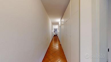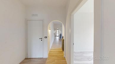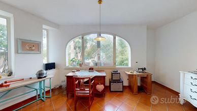 A seguire, un disimpegno conduce alle altre stanze dell'immobile: uno studio dalle dimensioni di 15 mq, una camera matrimoniale con cabina armadio e bagno in camera, un bagno con vasca ed, infine, un'ampia e luminosa zona living.