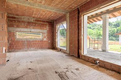 Edificata su un lotto di 1900mq, dominante per posizione rispetto al resto della lottizzazione, questa esclusiva villa singola è stata concepita e realizzata per offrire ai suoi proprietari il massimo del comfort e della vivibilità. La metratura è generosa; gli ambienti della zona giorno risultano ampi ed ariosi, magnificamente illuminati dalle grandi aperture predisposte per essere completate da finestroni a scorrimento. Il portico abbraccia la casa sui lati sud e ovest, oltre 50mq perfetti per godere al massimo della vista in occasione di pranzi e cene nella bella stagione. Al piano troviamo le prime due camere, entrambe matrimoniali di grande metratura, ed un ambiente pensato come studio ma tranquillamente adattabile come ulteriore camera da letto. Immancabile il bagno di servizio oltre ad un secondo bagno per la zona notte. Al piano primo ecco la camera padronale; più di 30mq serviti da bagno privato e terrazzino a tasca. Caratteristico di questo ambiente il soffitto in tavelle di cotto chiare. Il piano interrato ospita vari locali da adibire agli usi più vari; oltre ad un bagno ed alla lavanderia altri tre ambienti offrono lo spazio necessario a ricavare eventualmente una grande taverna, cantina, palestra, zona benessere. E' già presente un vano predisposto per ospitare eventualmente un ascensore interno che colleghi i tre piani dell'immobile. La villa è servita da un garage di circa 95mq. Completa la proprietà una porzione di bosco servito da due accessi carrai. L'immobile viene venduto al rustico, con isolamento a cappotto già realizzato.