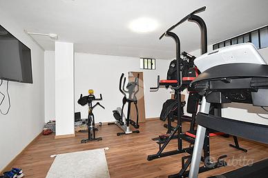 Al piano seminterrato tavernetta con predisposizione per un angolo cottura, bagno completo di doccia, lavanderia, locale hobby ( attualmente adibito a palestra ) e box auto doppio.