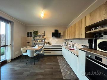 L'ingresso conduce a un ampio soggiorno con cucina abitabile open space, luminoso e funzionale con uscita diretta sul giardino e sul terrazzo ideale per vivere gli spazi esterni in ogni stagione. Bagno con doccia.