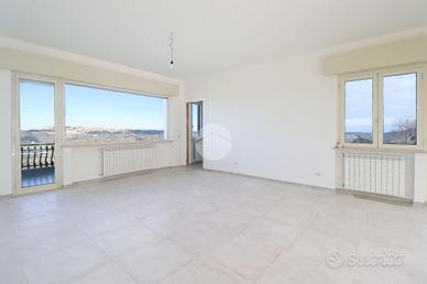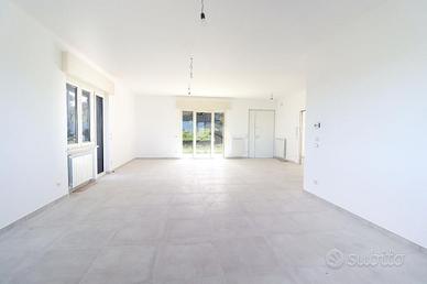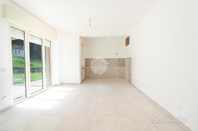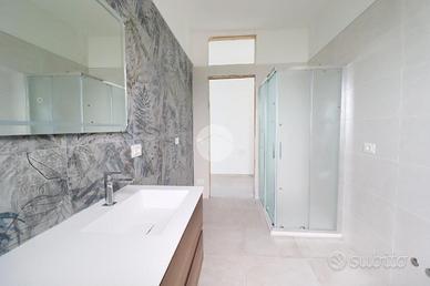 Al piano terra, recentemente ristrutturato, si sviluppa un appartamento luminoso con ampio soggiorno dotato di grandi vetrate panoramiche, cucina abitabile con accesso al portico, balcone e bagno finestrato per la zona giorno. La zona notte comprende quattro camere matrimoniali e due bagni finestrati con box doccia.