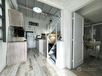 L'accesso è garantito da un comodo ingresso indipendente che ci conduce all'interno del cortile di proprietà , che abbraccia l'immobile su tre lati, con possibilità di posteggiare l'auto all'interno. Internamente la villetta è costituita dal soggiorno (dove trova spazio un divano letto) con angolo cottura, il bagno finestrato e una camera matrimoniale situata nel soppalco.