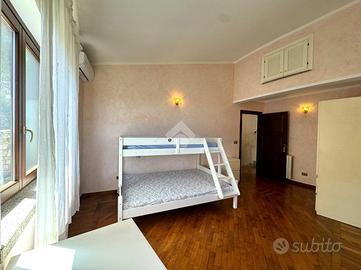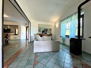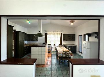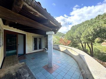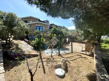BUDONI - A Solità, piccola frazione a meno di 3 km dalla spiaggia, splendida villa singola vista mare, immersa nel verde. Percorso un brevissimo tratto di strada vicinale, si raggiunge l'ingresso della proprietà privata, costituita da un lotto di circa 2500 metri quadrati, con vigneto e piante da frutto, delimitato da muri perimetrali in pietra tipica e granito. Tale finitura domina anche sulle pareti esterne della casa che presenta una forma 'a conchiglia'. Varcato il cancello carrabile, si viene accolti da un cortile lastricato che conduce frontalmente all'ingresso del piano seminterrato, in cui è possibile posteggiare l'auto. In questo livello, trovano spazio anche una cucina rustica, un bagno e una lavanderia. Sia tramite delle scale interne che esterne, si raggiunge il piano primo dell'immobile, che ospita la zona giorno. L'ampia sala da pranzo centrale con camino domina il livello: attorno ad essa una zona aperta dedicata all'angolo divano con stufa a legna, una cucina abitabile a vista e uno spazioso bagno finestrato con doppio lavandino. Tre verande, di cui due frontali e una opposta di generose dimensioni, danno sfogo esterno alla zona giorno mentre, due ampi ripostigli, completano il piano. Proseguendo lungo le comode scale interne, si raggiunge il primo e ultimo piano dello stabile, che ospita la zona notte. Quattro camere da letto con parquet inframezzate dal bagno finestrato e dotato di vasca idromassaggio, sono collegate a una veranda coperta dalla quale si può godere della vista mare. L'immobile si presenta in ottime condizioni, è dotato di riscaldamento e raffrescamento autonomi e viene venduto arredato.