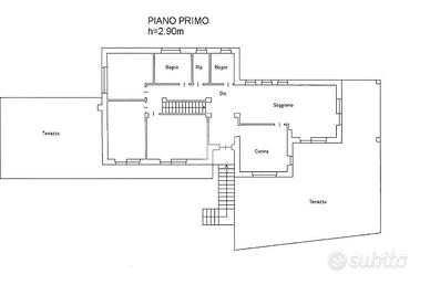 Salendo al primo piano, collegato da una scala interna, si apre la vera e propria zona abitativa. La cucina, luminosa e abitabile, è separata dal soggiorno, ampio e accogliente, arricchito da una stufa a pellet. La zona notte ospita tre camere da letto e doppi servizi, mentre due grandi terrazzi donano luminosità e spazio all'intero piano.