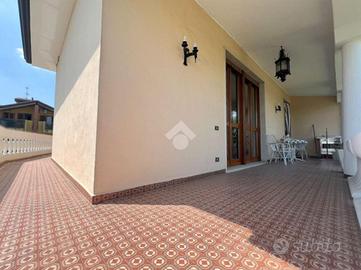 PARTICOLARITA' E DESCRIZIONE Trattasi di villa bifamiliare degli anni '70 da rimodernare, composta da un trilocale e un quadrilocale, libera su quattro lati e servita da un ampio giardino privato. Accediamo alla soluzione tramite scalinata esterna che ci conduce al porticato dal quale si accede al quadrilocale composto da un ampio soggiorno e da una cucina abitabile, proseguendo dal disimpegno arriviamo alle tre ampie camere da letto, due bagni entrambi finestrati serviti uno da box doccia e uno da vasca e ulteriore locale utilizzabile come studio/cabina armadio; tutti i locali del piano primo sono serviti da due ampi portici che permettono di avere uno spazio esterno interamente privato; dalla scala interna arriviamo invece al piano terra dove troviamo una lavanderia e un locale attualmente adibito a cucina abitabile con annessa sala da pranzo direttamente collegata all'ampio box. Al piano terra troviamo invece il trilocale composto da un disimpegno che collega tutti i locali, sulla sinistra troviamo un ampio soggiorno, mentre sulla destra la cucina abitabile anch'essa molto ampia, proseguendo dal disimpegno arriviamo alle due camere entrambe matrimoniali e il bagno finestrato con box doccia, completano il piano terra uno sgabuzzino ricreato nel sottoscala e l'accesso diretto al box. Completano la soluzione le zanzariere a tutte le finestre, l'impianto di climatizzazione al piano primo ed un ulteriore box sito all'interno del giardino privato. UBICAZIONE E CONTESTO L'immobile è situato in un contesto di corte a pochi minuti dal centro di Busnago e da tutti i principali servizi che il comune offre. Busnago è dotato di tutti i principali servizi: Scuole, Mezzi pubblici, Campo Sportivo, Farmacia, Supermercato, e varie attività commerciali a pochi minuti dal centro commerciale il Globo.