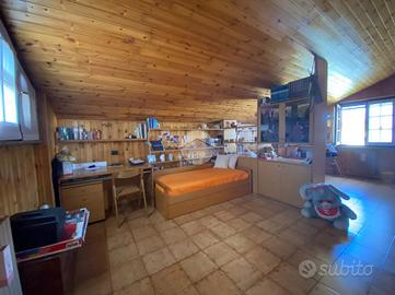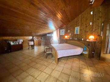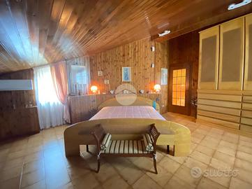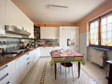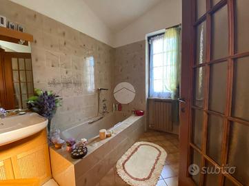 Ubicata in una zona tranquilla e immersa nel verde, proponiamo una prestigiosa villa singola disposta su due livelli abitativi oltre al piano seminterrato. La proprietà è circondata da un giardino privato di circa 500 mq che abbraccia l'intero perimetro della casa e comprende un comodo corsello box e un patio piastrellato. Nell'area esterna è stata realizzata una curata zona relax, ideale per pranzi all'aperto, momenti di convivialità e per godere appieno della quiete e della riservatezza del contesto. La villa si distingue per le ampie metrature e per le ottime condizioni generali, frutto di una manutenzione costante e di recenti interventi di ammodernamento. Al piano terra l'ingresso conduce a un ampio e luminoso soggiorno, affiancato da una cucina abitabile, due camere da letto e un bagno padronale completamente ristrutturato. Il piano primo ospita la zona notte, composta da una spaziosa camera matrimoniale, due camere comunicanti tra loro ma facilmente separabili, un bagno e un balcone che conferisce luminosità e ariosità agli ambienti. Il piano seminterrato offre un ampio locale versatile e funzionale, ideale come area ricreativa o ambiente polifunzionale, oltre a un bagno recentemente rinnovato, locale caldaia e un box doppio in larghezza. L'immobile è rifinito con dotazioni di qualità, tra cui nuovi infissi in PVC a doppio vetro, pavimentazione in granito, aria condizionata con pompa di calore, impianto antifurto e un sistema di riscaldamento a doppia alimentazione, metano e pellet, che consente una gestione efficiente dei consumi. Si tratta di una soluzione ideale per chi è alla ricerca di spazi generosi, privacy e comfort, senza rinunciare al piacere di vivere in un contesto residenziale immerso nel verde.