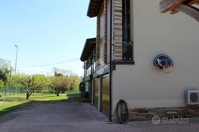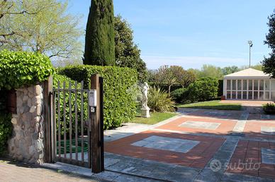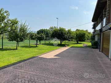 BUSSOLENGO - in un contesto riservato e di grande pregio, proponiamo in vendita esclusiva una splendida proprietà composta da due ville distinte: una signorile e una moderna, perfettamente integrate tra loro ma ideali anche come soluzioni abitative indipendenti. -La villa moderna costruita nel 2010 si estende su una superficie di 337 mq., caratterizzata da finiture di lusso, sviluppata su più livelli: Piano terra: ampia taverna ideale per momenti conviviali, cantina, bagno, lavanderia e pratico guardaroba. Piano primo: luminoso soggiorno, cucina separata, bagno e accesso a un elegante terrazzo coperto, perfetto per pranzi e relax all'aperto. Piano secondo: zona notte composta da due camere da letto e due bagni, studiata per garantire privacy e comodità. Completa la proprietà con un box auto doppio, ideale per ospitare comodamente due auto e offrire ulteriore spazio di deposito. -La villa signorile elegante e raffinata, con ambienti ampi e ben distribuiti: Piano terra: cucina separata, soggiorno e ulteriore salottino. Piano primo: cinque camere da letto, quattro bagni e vari balconi. Piano seminterrato: ampia taverna e cantina. Zona mansardata: soffitta utilizzabile come ulteriore camera o spazio multifunzionale con bagno. All'esterno è presente un porticato coperto, ideale per vivere momenti conviviali all'aperto e si completa la proprietà con quattro posti auto coperti Le ville sono circondate da un giardino privato di circa 5.550 mq, arricchito da una piscina interrata con spogliatoi e un campo da calcio, perfetto per il tempo libero e per chi desidera vivere a contatto con la natura senza rinunciare al comfort. Soluzione unica, ideale per famiglie numerose, per due nuclei abitativi o come investimento di prestigio.