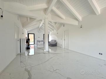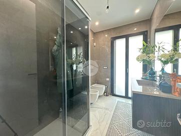 Questa splendida villa presenta un ampio soggiorno luminoso con cucina a vista e affaccio su un spazioso patio esterno che, essendo già dotato di riscaldamento a pavimento, può essere facilmente adattabile per realizzare una spa privata o una funzionale cucina esterna consentendo di vivere gli spazi all'aperto tutto l'anno.
