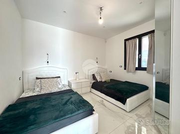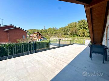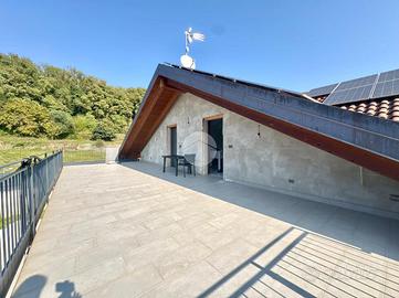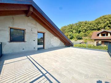 Al piano superiore, un grande salone conduce a due terrazzi panoramici e a due ampie camere matrimoniali, di cui una con sfogo sul balcone, ognuna con bagno privato dotato di box doccia.