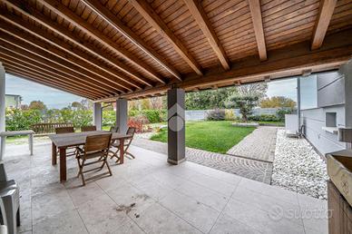 Al piano terra, la villa offre una serie di locali di servizio, tra cui una cantina, un bagno, una lavanderia, un locale stenditoio e una legnaia. Questi spazi possono facilmente essere trasformati in una comoda taverna, ideale per momenti di relax e convivialità.