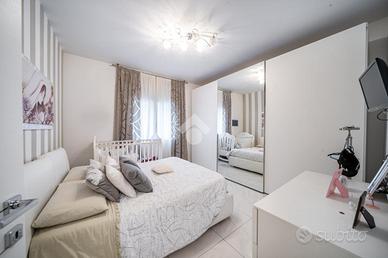 Al primo piano, si apre un ampio soggiorno, perfetto per accogliere ospiti e trascorrere serate in famiglia. La cucina abitabile è spaziosa e funzionale, mentre le due camere da letto matrimoniali offrono un rifugio di tranquillità. Completa il piano un bagno moderno e ben curato.