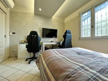 Sono presenti inoltre due camere da letto matrimoniali, una camera da letto doppia, uno studio e due bagni: uno finestrato con doccia e uno finestrato con vasca.
