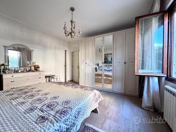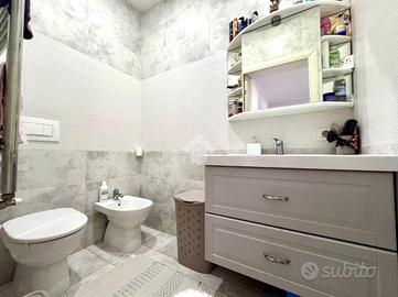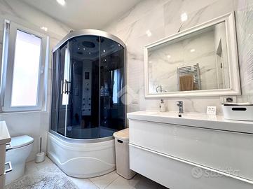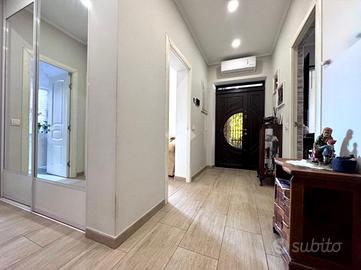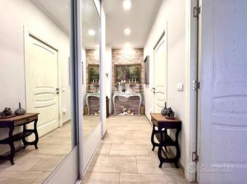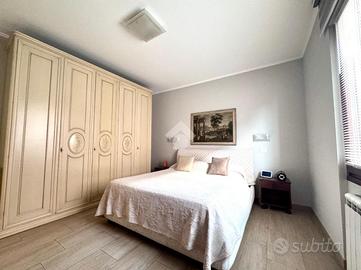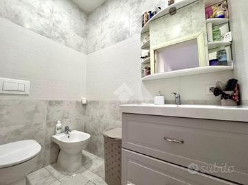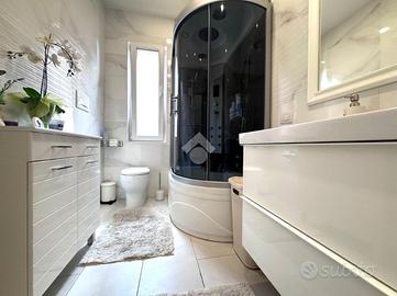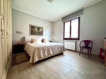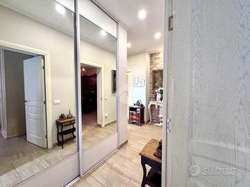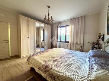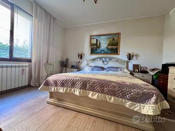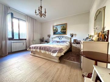Lungo e ampio disimpegno che collega la zona notte formata da due camere da letto matrimoniali, di cui una con un bagno privato completo di sanitari, un'ulteriore bagno padronale completo di sanitari e vasca/box doccia. Completa lo studio che da la possibilità di accedere al garage doppio in lunghezza pavimentato, cantina seminterrata e lavanderia ampia.