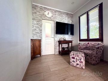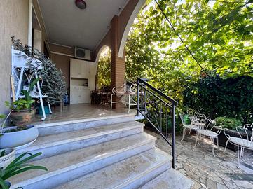 Esternamente: giardino sul retro, corselli pavimentati che circondano l'abitazione; sul davanti spazio verde e terrazzino con portico vivibile nelle belle giornate.