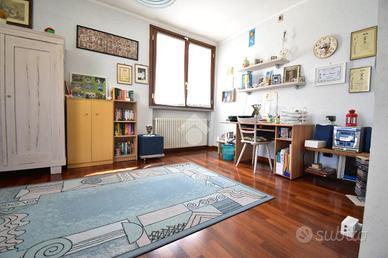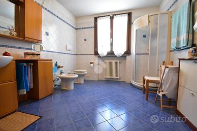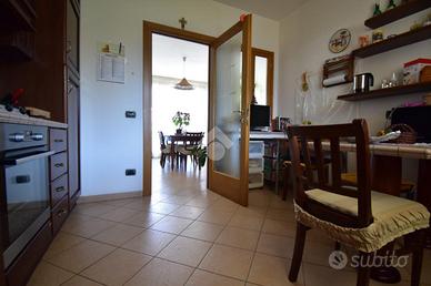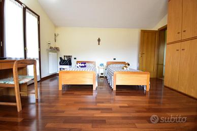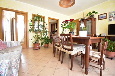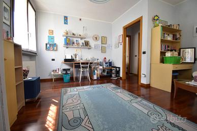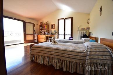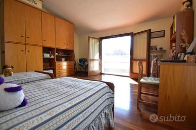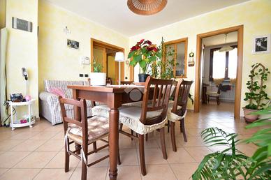 Al primo piano si sviluppa l'abitazione principale, un ingresso privato conduce alla sala da pranzo con balcone di 13 e alla comoda cucina abitabile, un soggiorno importante di 50 mq dotato di ampia vetrata , una porta finestra con accesso ad un terrazzino, e un'altra finestra, perfetto per accogliere amici e familiari, e un grande bagno con doccia, tramite un disimpegno accediamo alla zona notte dove ci accolgono due ampie camere da letto matrimoniali di cui una con accesso al portico, rifinite in parquet.