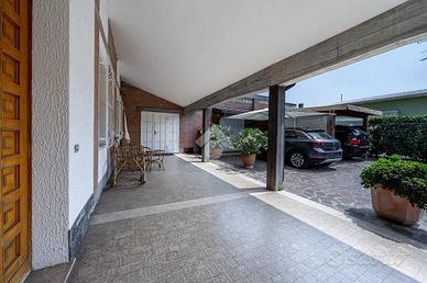 Chiudono la proprietà 3 ampi garage ed il giardino in parte pavimentato.