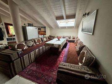 Attraverso la scala indipendente si accede al piano superiore caratterizzato da travi a vista in legno. Composto da ampio soggiorno con cucina a vista, zona notte composta da tre camere oltre doppi servizi.