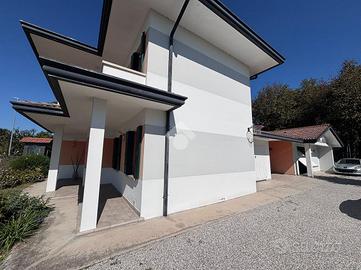 Camponogara: in prossimità del centro paese, comoda a tutti i servizi, villa singola di ampie metrature con giardino. L'immobile, sviluppato su due livelli, con accesso dal portico, si compone di ampio ingresso con soggiorno separato dalla cucina abitabile e disimpegno che conduce alla centrale termica e al bagno finestrato con doccia. Le scale conducono al primo piano che presenta tre camere da letto, due delle quali matrimoniali e una camera singola con accesso a un terrazzo, un ripostiglio e il secondo bagno finestrato con vasca. A completare il piano, ulteriore terrazzo di generose metrature. La soluzione presenta garage doppio di 30 mq e, in corpo staccato, magazzino di 120 mq con adiacente terreno edificabile.