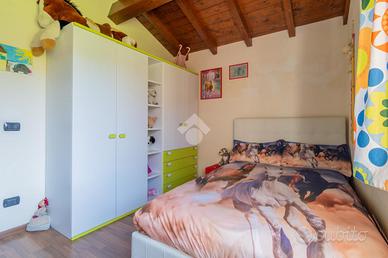 Il primo piano ospita la zona notte, composta da una camera matrimoniale con accesso al balcone, due ulteriori camere da letto e un secondo bagno con finestra e doccia.