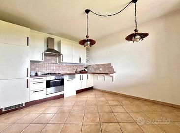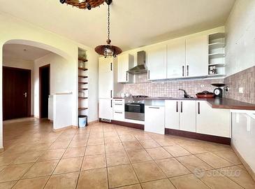 Il soggiorno è separato dalla cucina abitabile da un elegante arco, e quest'ultima gode di una grande finestra che offre una splendida vista panoramica.