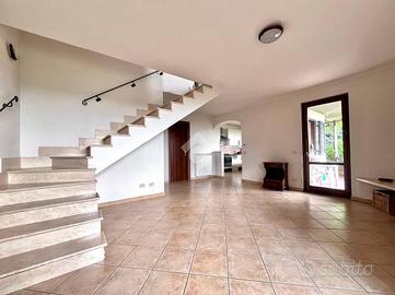 Esternamente, l'immobile è completamente circondato da un giardino, curato e ricco di piante, che dona all'ambiente un'atmosfera serena e riservata.