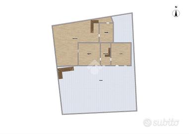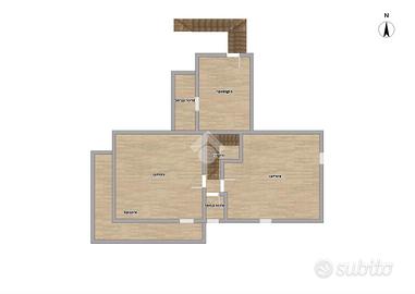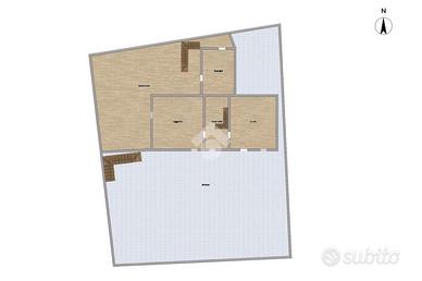 Al piano terra, l'ingresso mediante ampio terrazzo, è diretto nella cucina abitabile, proseguendo, mediante disimpegno, ove è presente una scala che porta al piano superiore, c'è il soggiorno. Un'ulteriore scala al piano terra, esterna all'immobile collega un ampio ripostiglio. Il piano superiore, invece, collegato da una scala interna, è composto da due camere da letto di cui una con balcone ed un servizio finestrato. Ulteriore scala esterna, porta al ripostiglio con balcone.