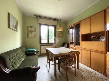L'immobile dispone inoltre di un'autorimessa tripla con ripostiglio, collegata a un grande porticato coperto che permette l'accesso all'esterno e rende facile la gestione di spazi esterni e attività all'aperto.