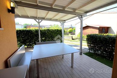 Completa la proprietà l'ampio giardino in erba sintetica e la zona coperta con tettoia, perfetta per godersi lo spazio esterno.