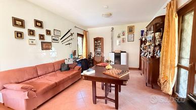 La villa ha un doppio ingresso indipendente, offrendo la possibilità di essere suddivisa facilmente per due nuclei familiari.