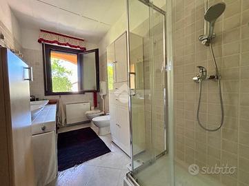 Il giardino, curato e piantumato con gusto, avvolge la proprietà creando un'atmosfera di privacy e benessere, un vero e proprio angolo di natura dove rilassarsi e rigenerarsi. Il passo carraio permette un facile accesso, mentre il doppio posto auto completa questa proposta, rendendola ancora più funzionale.