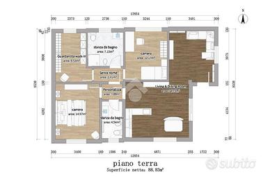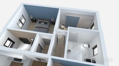 L'abitazione si sviluppa su una superficie interna di circa 100 mq, distribuiti su un unico livello, con possibilità di suddivisione in zona giorno, zona notte e servizi in base alle proprie esigenze progettuali.