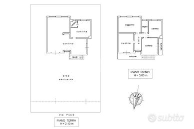 Al piano rialzato troviamo invece l'unità abitativa completa di ingresso, zona giorno con ampia cucina abitabile, salotto luminoso esposto a sud, bagno e due camere da letto di cui una con balcone a caratterizzare la zona notte.