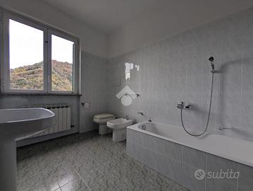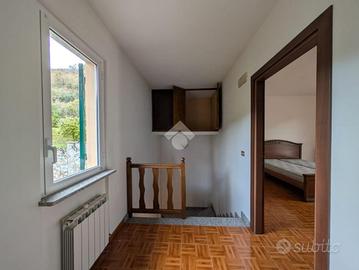 Carasco - Terrarossa - Villa indipendente su più livelli con box doppio, area esterna piastrellata, terreno a fasce. A breve distanza dal centro di Carasco, proponiamo in vendita casa indipendente su tre livelli con ampio spazio esterno di proprietà. L'immobile è così composto: Al piano terra, la taverna con ingresso, cucina abitabile, camera da letto matrimoniale e un primo bagno con doccia. Tramite le porte finestre in doppi vetri, sia la camera che la cucina hanno accesso diretto alla corte esterna. Utilizzando la caratteristica scala in granito, al piano primo si trovano un'altra cucina abitabile, un ampio salone, una camera da letto matrimoniale, un secondo bagno finestrato. Al secondo e ultimo piano, due camere da letto matrimoniali con accesso sul balcone, un terzo bagno finestrato con vasca, un vano sopra-scala per ulteriore spazio di stoccaggio. La villa risulta molto luminosa data la posizione rialzata, e può facilmente essere riconfigurata come bifamiliare. Gli impianti sono indipendenti per ogni livello. Completano la proprietà un box doppio soppalcato, due ampie cantine, una legnaia e circa 10.000 mq di terreno, con indice di edificabilità per un ulteriore unità abitativa di 100mq. All' esterno del confine cintato della casa, un'area parcheggio con spazio di manovra.