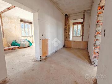 La casa è stata interamente svuotata all'interno in preparazione della realizzazione di progetto di ristrutturazione ed ampliamento.