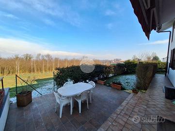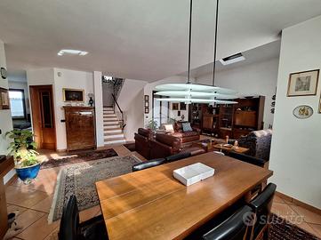 All'esterno, un ampio parco piantumato circonda la villa, offrendo un'oasi di tranquillità e una vista incantevole sulle montagne circostanti. Completano la proprietà un posto auto coperto e l'aria condizionata, assicurando comodità in ogni stagione.
