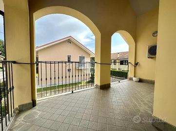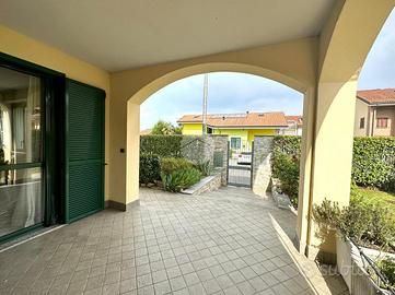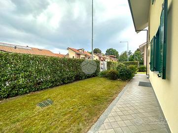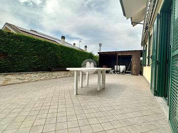 Il giardino, finemente curato che circonda l'intera abitazione, è adatto a qualsiasi tipo di utilizzo. L'esteso terrazzo, con accesso diretto dalla cucina abitabile e con lo spazio barbecue conferiscono all'ambiente la privacy e la libertà tipica di soluzioni come queste. Attraverso la porta di colore verde, si trova l'ampia sala resa accogliente grazie alla presenza del camino ventilato, e la cucina abitabile a vista realizzata su misura.