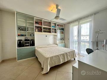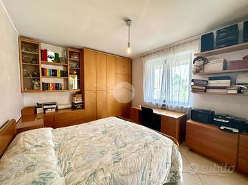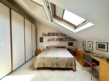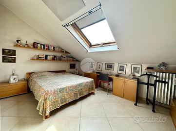 Il pianerottolo disimpegna tutti i locali. La prima ampia camera matrimoniale dispone di armadio a cinque ante e di una struttura su misura angolare. Da questo locale è possibile accedere ad un luminoso e sfruttabile terrazzo. La seconda camera da letto, anch'essa matrimoniale e di generose dimensioni, consente l'accesso al balcone. Completano il piano un comodo bagno, finestrato, e un locale soffitta attualmente adibito a deposito. Al piano sottotetto, con accesso da botola tramite scala estraibile, si trova la soffitta di generose dimensioni ed in buono stato interno. Al piano interrato, raggiungibile tramite scala sia dal box auto che dal piano terra, si trova una comoda cantina, un vano ad uso deposito, una centrale termica con caldaia a condensazione ed un'autorimessa di 88 mq, con accesso da cancello elettrico.