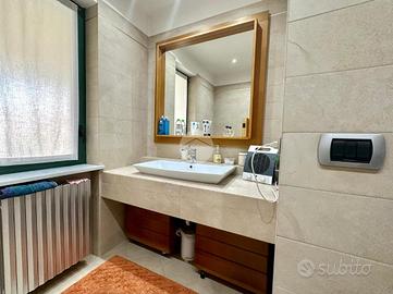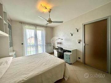 La camera da letto, separata dalla zona giorno tramite un disimpegno, ospita un armadio quattro stagioni e una finestra con infissi fuori misura che conferisce un'ottima luminosità all'ambiente. Conclude il piano il bagno, ottimamente rifinito, dotato di box doccia.