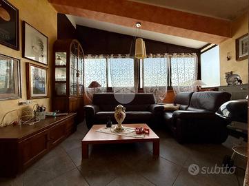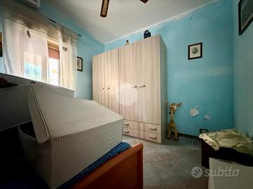 L'ingresso interno si apre su una luminosa cucina-soggiorno; la zona living è arricchita da ampie vetrate che regalano una vista panoramica sul paese e scorci di mare, rendendo l'ambiente particolarmente luminoso e accogliente. Un corridoio conduce alla zona notte composta da due camere da letto e bagno con doccia.