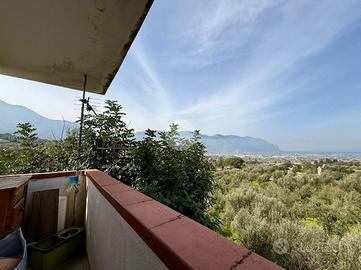 Al piano terra troviamo accesso sia pedonale che carrabile, con uno spiazzale interno adibito a posti auto. L'ingresso esterno conduce a un piccolo giardino e a una veranda panoramica con vista laterale sul paese e sul suggestivo Castello di Carini, perfetta per trascorrere momenti di relax all'aria aperta.