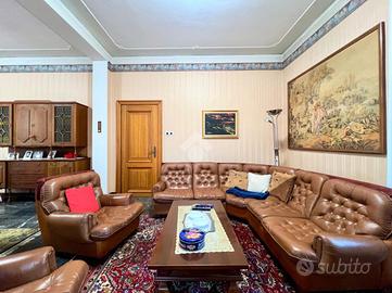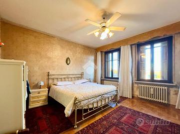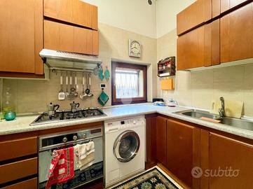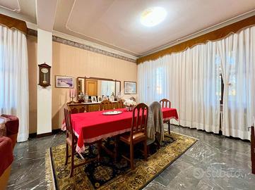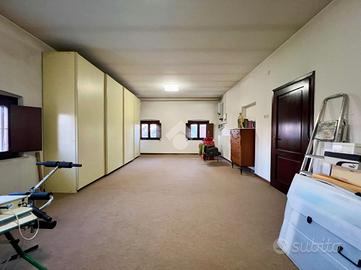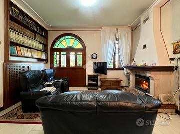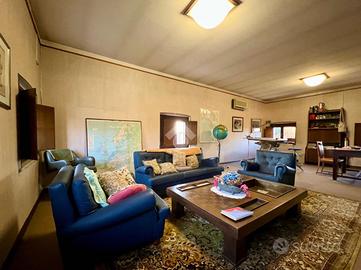 Attraverso un affascinante portico colonnato si accede all'ingresso principale, illuminato da ampie porte vetrate. L'atrio introduce due importanti ambienti: a destra un ampio e accogliente soggiorno, di oltre 37 metri quadri, a sinistra una sala da pranzo, direttamente collegata a una cucina funzionale e completa. In fondo al corridoio di entrata, un ripostiglio è stato adibito a bagno al pian terreno, e una scala conduce alla zona notte. Completa il piano un riservato e silenzioso studio.