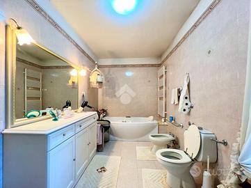 Salendo la scala, la zona notte si compone di quattro camere da letto, tutte matrimoniali, e un grande bagno finestrato con vasca idromassaggio. La camera padronale, la più grande, gode dell'affaccio sul terrazzo della residenza e con la vista sull'affascinante giardino da cui è circondata.