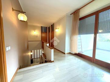 Il primo piano ospita invece un ampio appartamento caratterizzato da spazi luminosi e ben organizzati. Qui troviamo un grande terrazzo, un soggiorno, una sala da pranzo, la cucina, quattro camere da letto ed un bagno con vasca. La presenza di tre balconi garantisce ulteriore luminosità e piacevoli affacci sull'esterno.